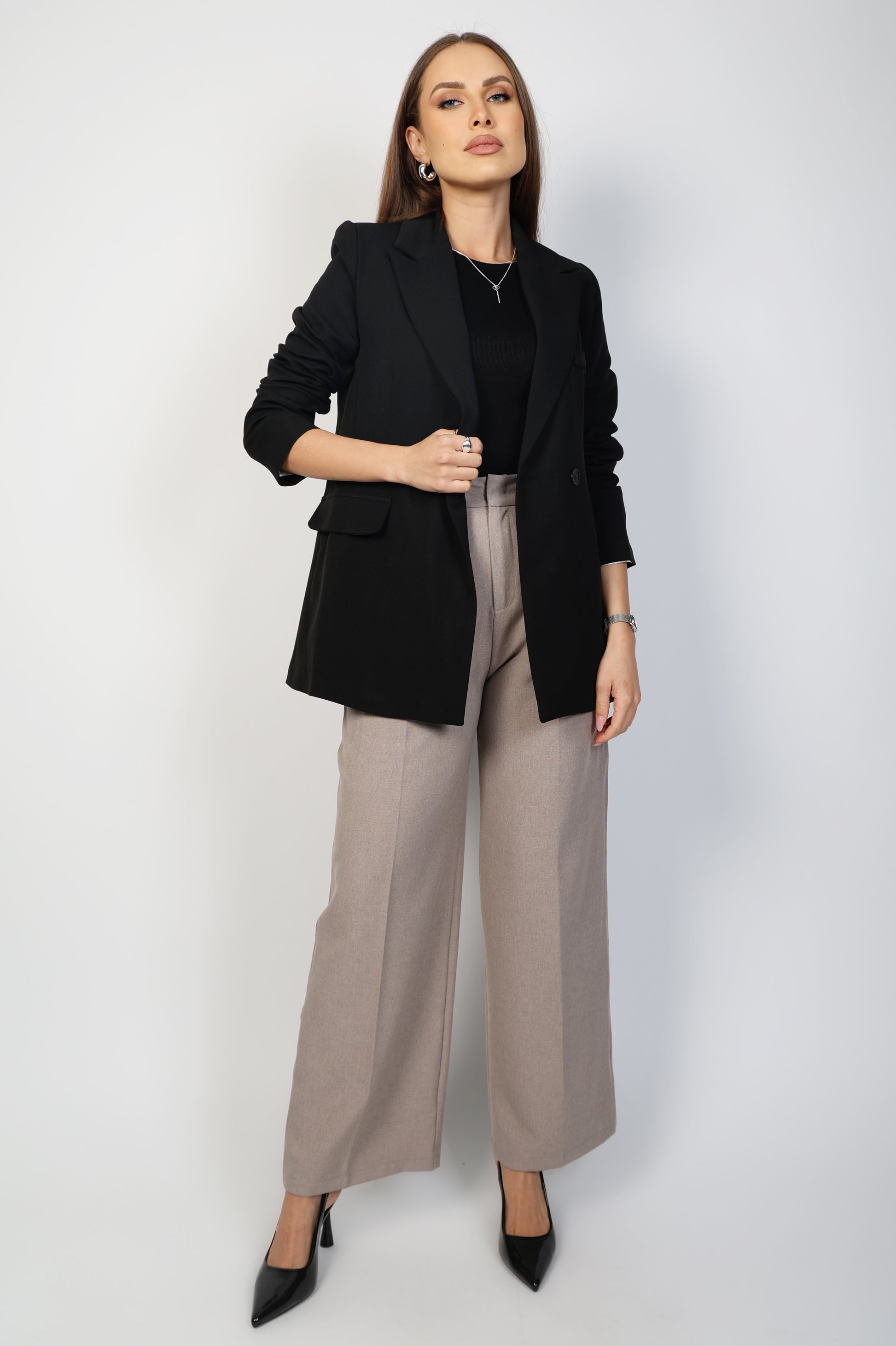 Pièce incontournable du dressing, ce blazer noir à boutonnage croisé incarne l’élégance intemporelle. Sa coupe structurée sublime la silhouette, tandis que son tissu fluide et confortable garantit un tombé impeccable. Parfait pour une allure sophistiquée au bureau comme en soirée, il s’adapte aussi bien à une tenue habillée qu’à un look plus décontracté. Un essentiel mode pour une garde-robe raffinée et moderne.