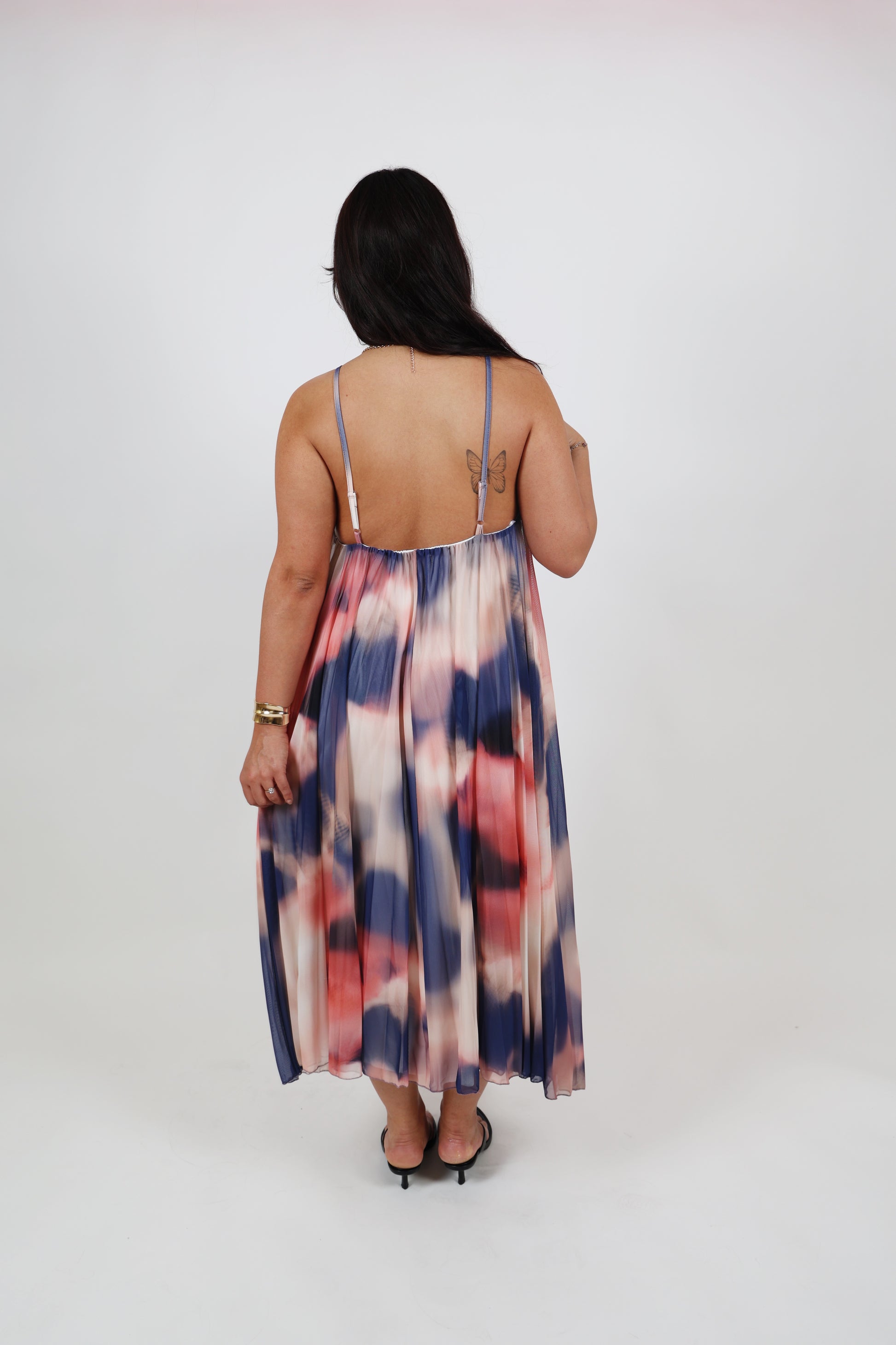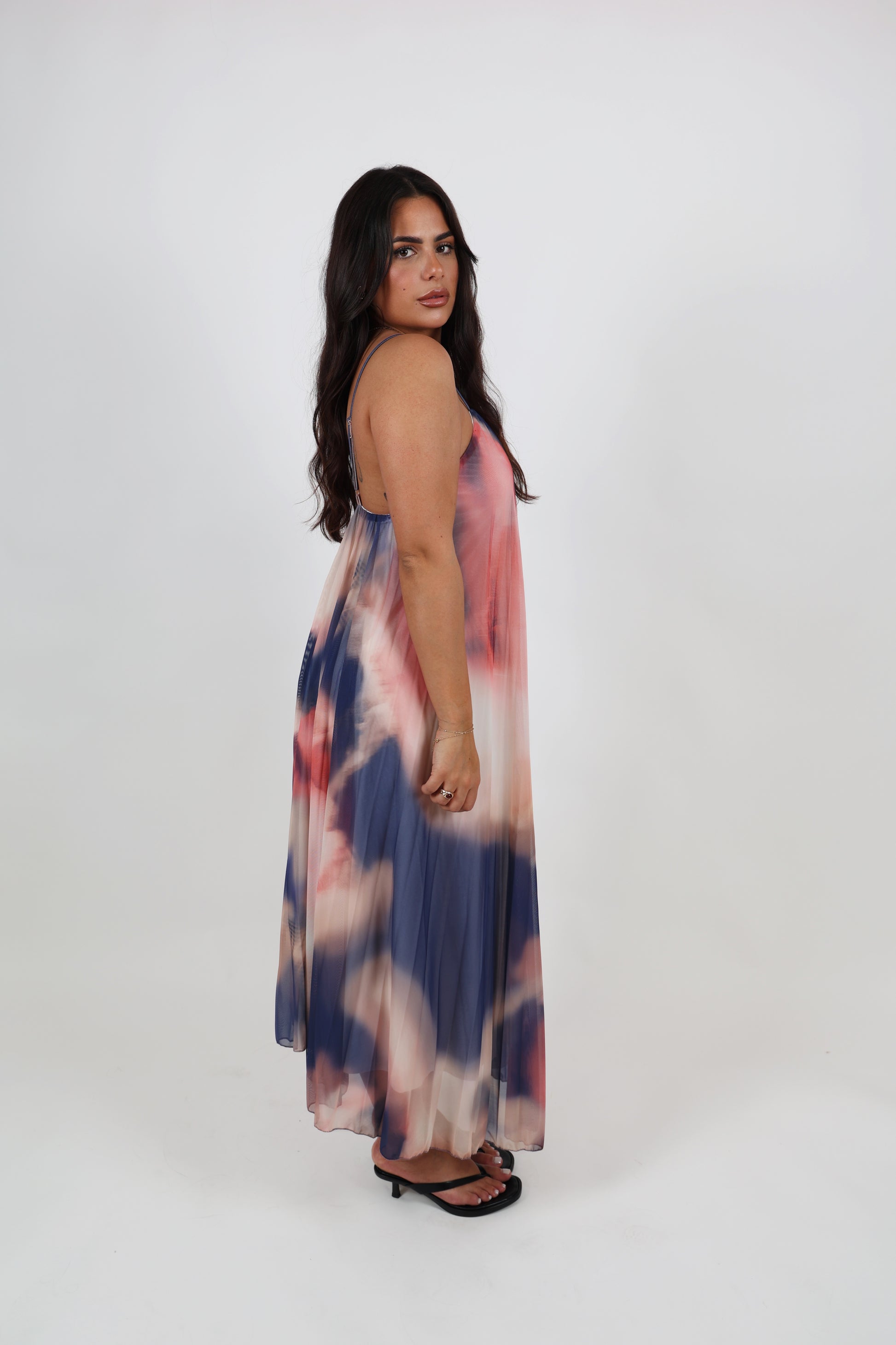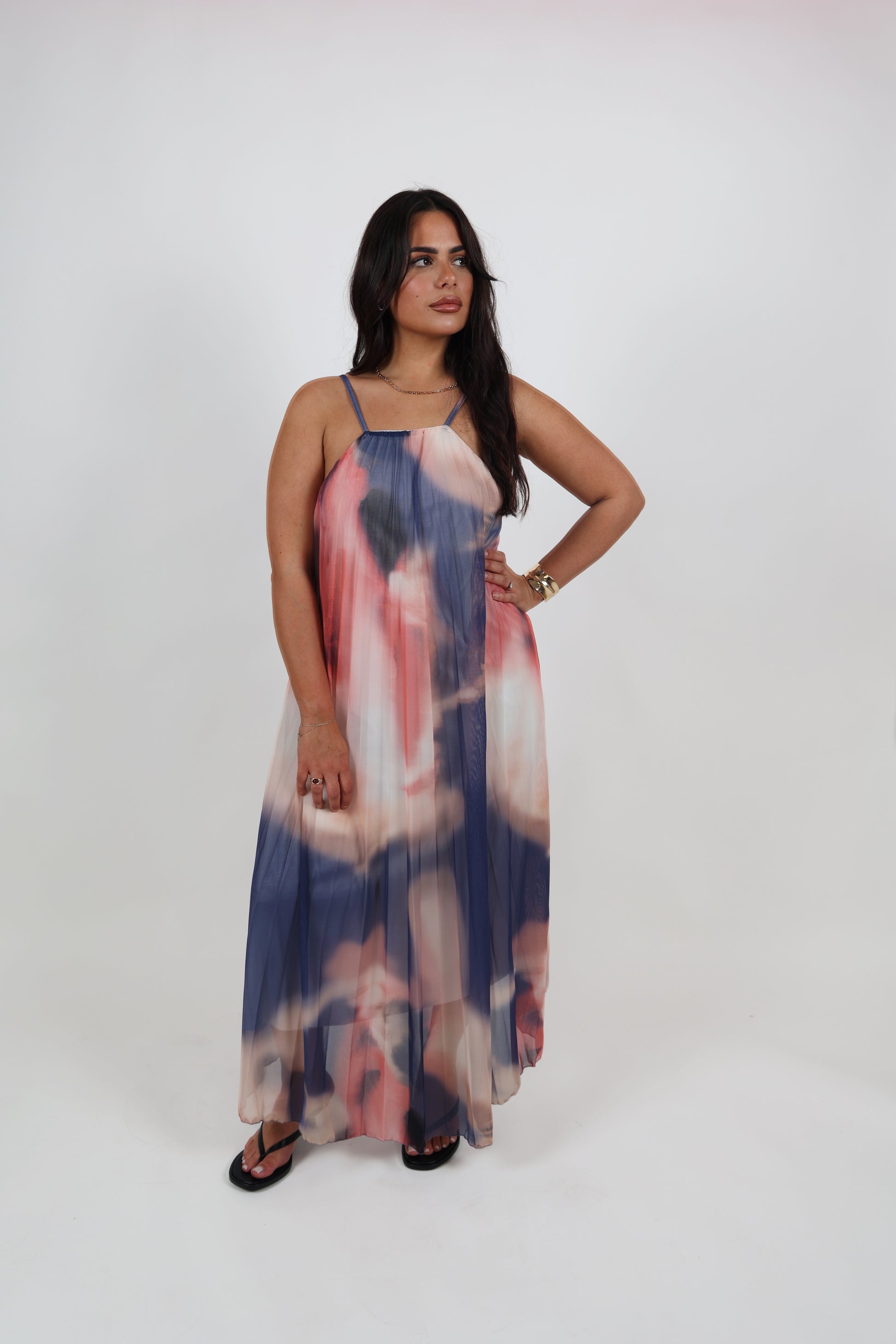 Robe longue à effet plissé, avec une doublure intérieure légère. Une pièce aérienne et éclatante, idéale pour l'été.