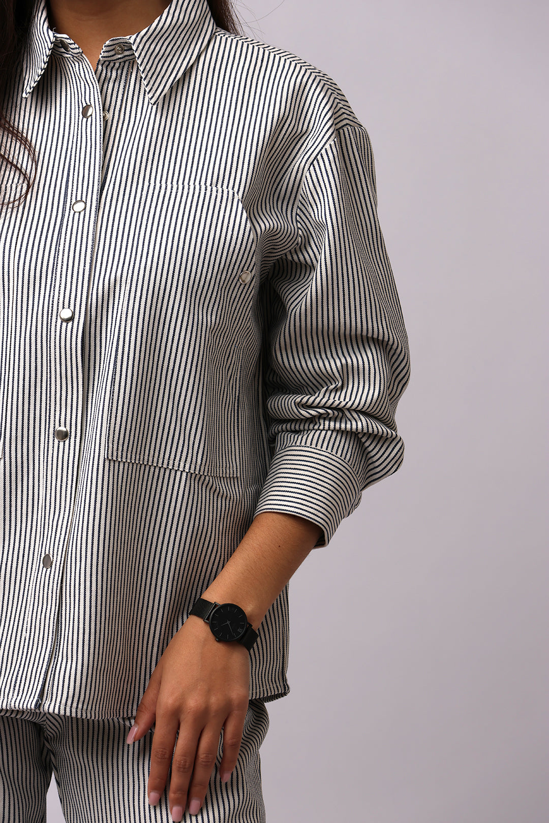 À mi-chemin entre la chemise et la veste, cette surchemise légère rayée est l’alliée parfaite pour un style casual et tendance. Elle s’adapte à toutes vos envies et occasions. Une pièce indispensable pour une garde-robe moderne et polyvalente.