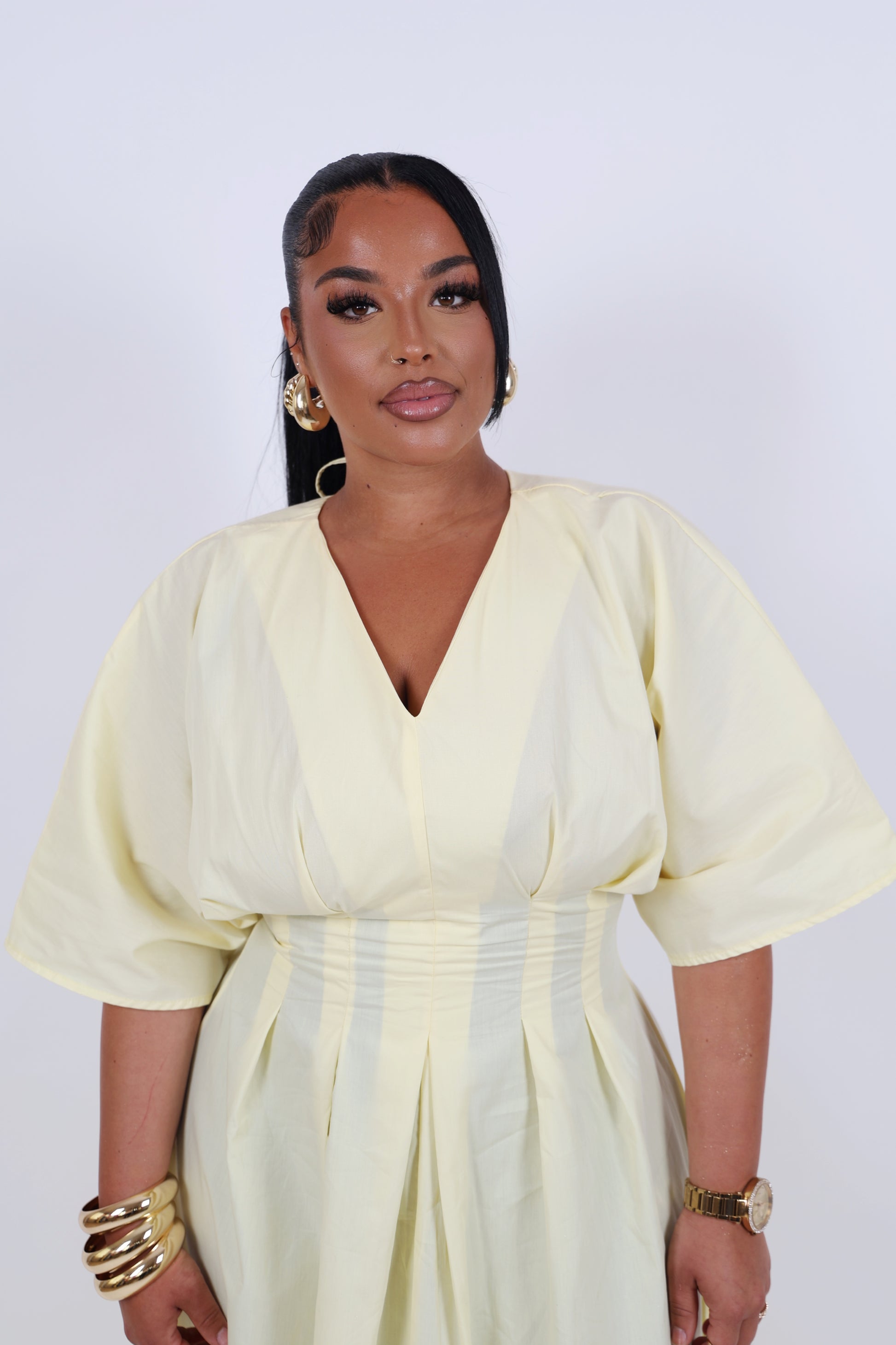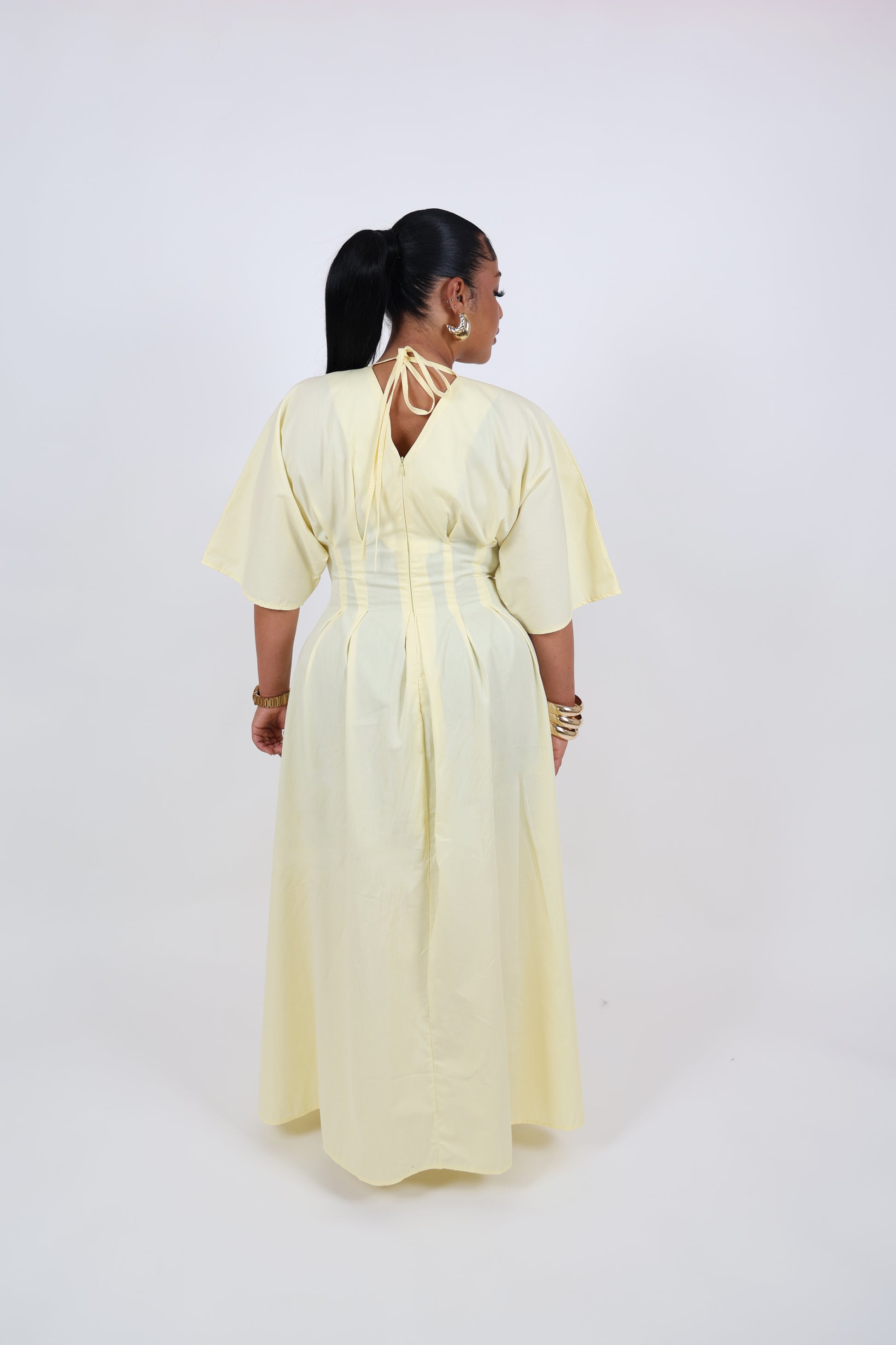 La robe parfaite pour les journées ensoleillées. Légère, douce et structurée, elle allie confort et élégance avec sa coupe fluide, son dos ouvert et ses plis délicats qui mettent en valeur la taille.