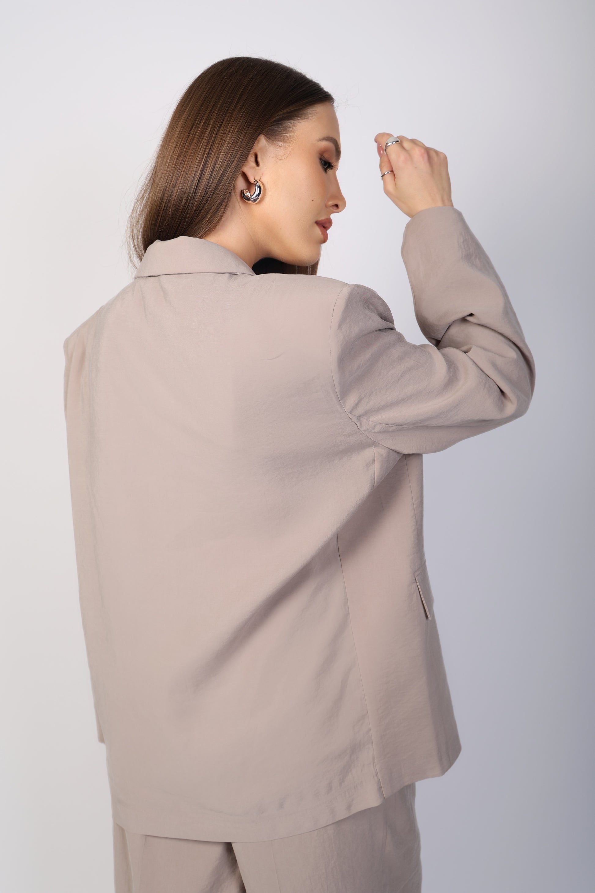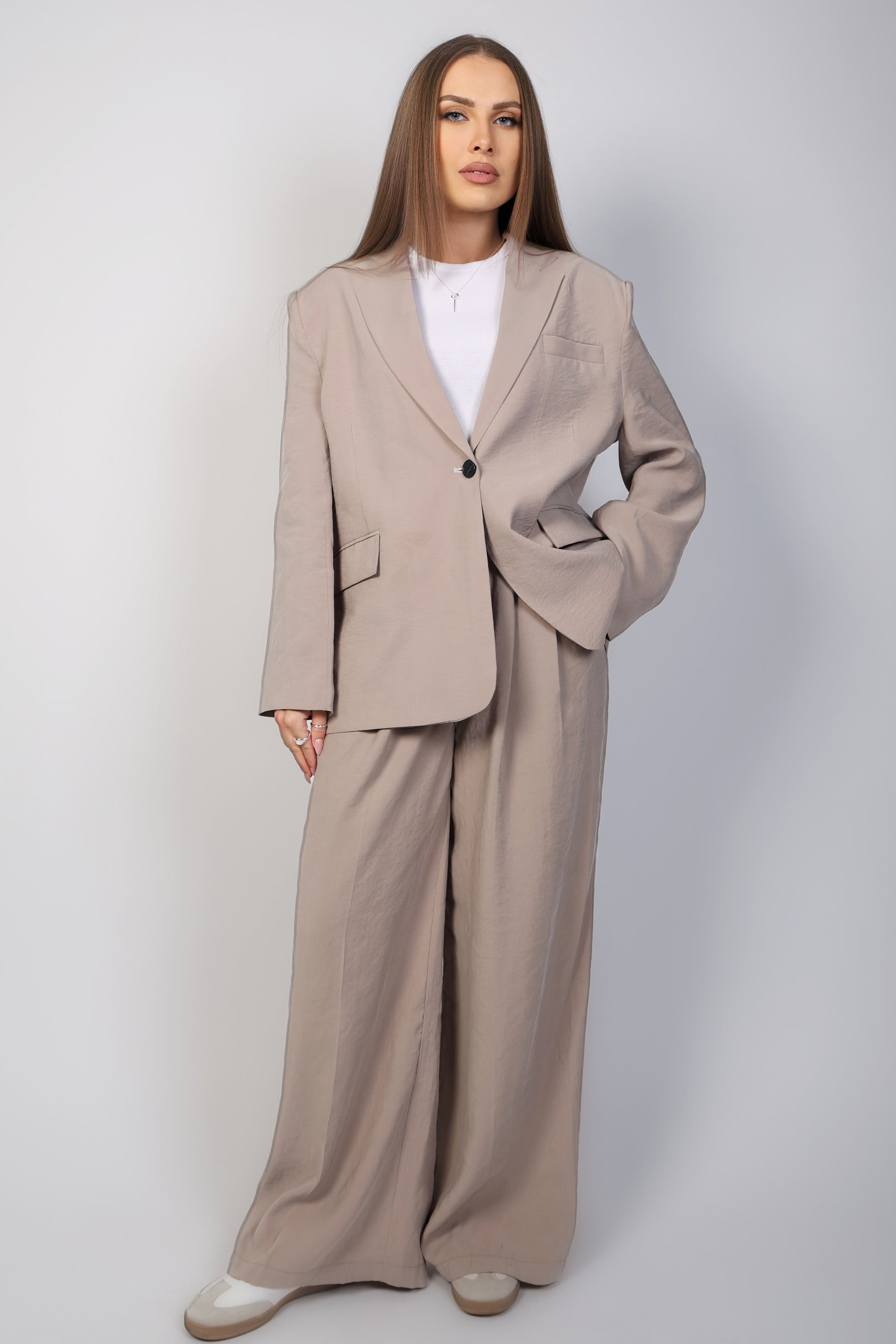 Blazer oversize en tissu léger, coupe droite et épaulettes intégrées. Il allie confort, structure et élégance. taille unique, pensé pour un porté ample et stylé.
